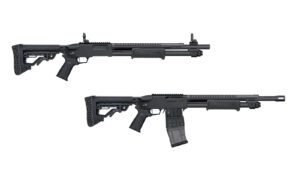 Long respected by both agencies and individuals as a producer of tactical shotguns, Mossberg introduced several new ones in late 2024. The 590-RM Mag Fed are pump guns chambered in 12 gauge with a 2.75-inch chamber. They ship with Mossberg’s unique double-stack 10-round magazines, with 5-, 15-, or 20-round mags. The 590-RM features a Magpul adjustable stock. Other conveniences include an AR-type ambidextrous safety selector and a Picatinny rail for an optic or iron sight. The base 590-RM includes flip-up front and rear sights by Magpul and a plain end on the 18.5-inch barrel. The Standoff version has no BUIS but includes a flash hider. Both feature Mossberg’s new low-profile, single-piece heat shield around the barrel and an ambidextrous Magpul accessory attachment sight on the top of the forend.