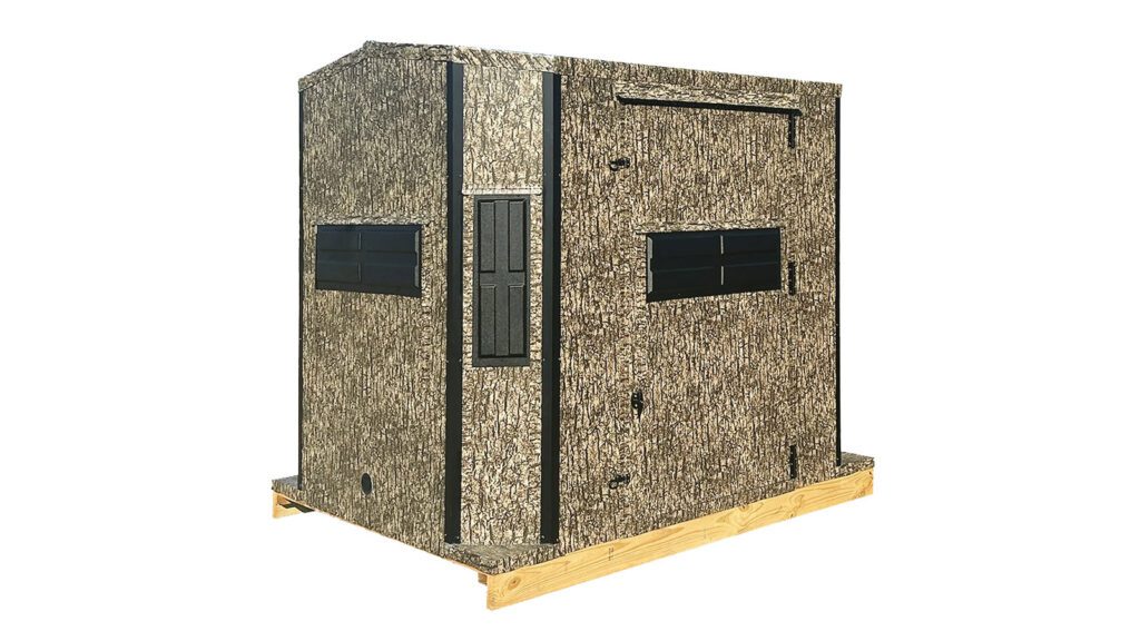 This 6x8-foot blind has been specially designed for hunters who use a wheelchair or trackchair. It features a 42-inch door, lowered windows, reinforced floor, and a second accessory shelf located beneath the window.
